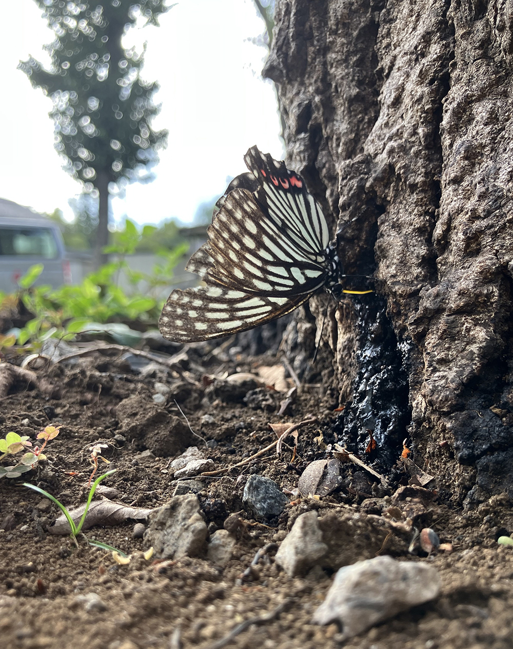 庭園のチョウチョが残りの蜜を吸いつくしています。